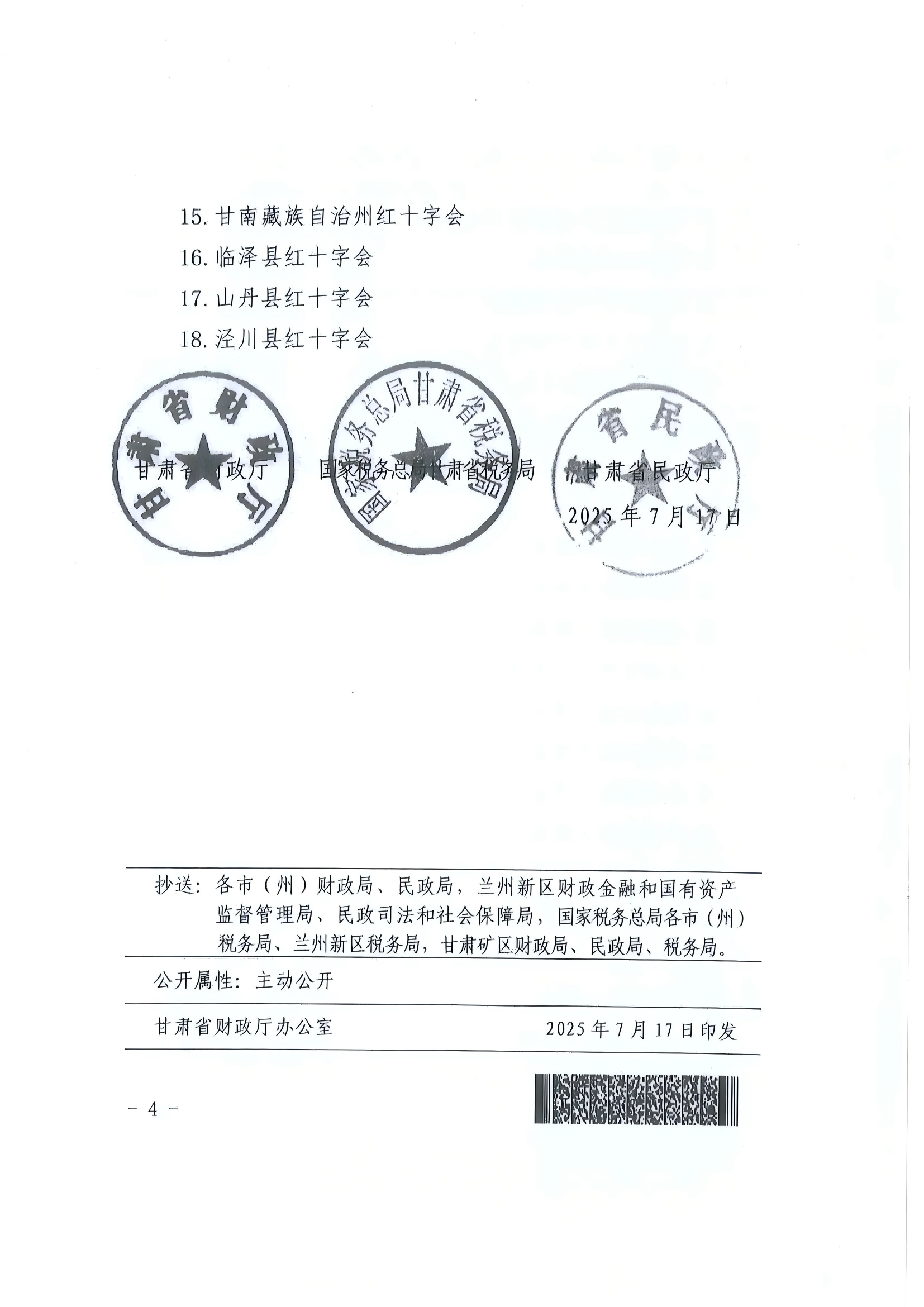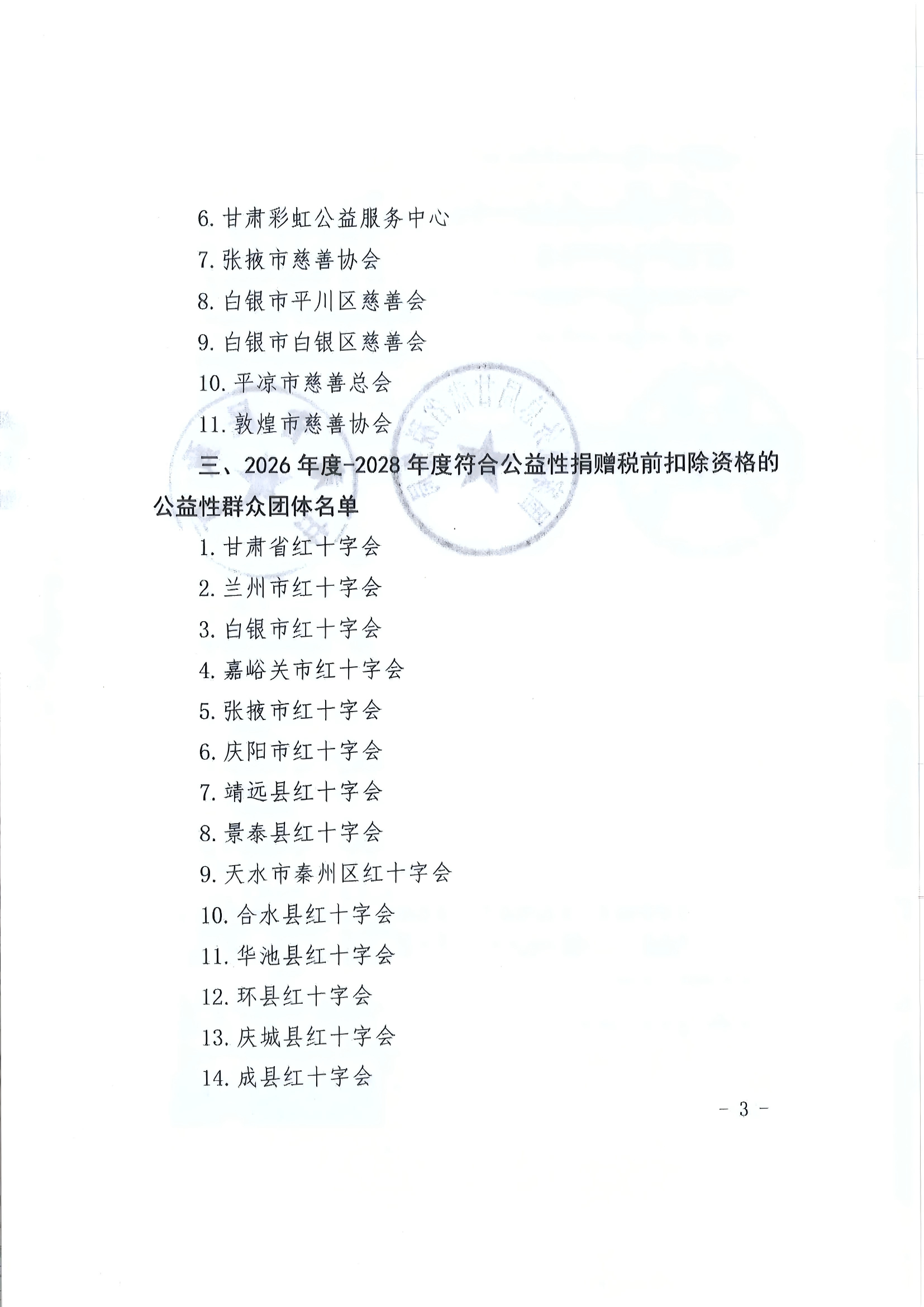 公告| 甘肅省財政廳國家稅務(wù)總局甘肅省稅務(wù)局甘肅省民政廳關(guān)于發(fā)布 2025年第一批公益性捐贈稅前扣除資格名單的公告